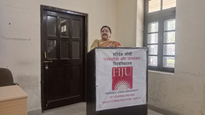 Our emphasis is to extend education beyond class-room teaching by organising seminars, talks, dialogues, workshops and inter-active sessions on Language, Law, Human Rights, Constitution and Citizen’s Rights, Science-Technology and Society, Environment, Climate Change, Gender Studies and Fake News. HJU seeks to create not only a new generation of competent media and communication professionals but also shape them as politically and socially sensitive and upright future media leaders of India.